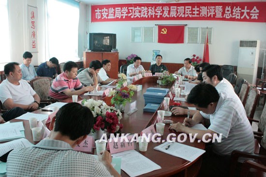 最后,会与全体人员对市安监局深入学习实践科学发展观活动进行群众满意度测评,测评结果满意度达93%