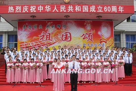 金秋送爽,丹桂飘香,激情澎湃,盛世欢腾。为庆祝中华人民共和国60年华诞,讴歌祖国60年来的光辉历程,9月24日,镇坪县“祖国颂”歌咏比赛在县中心广场拉开帷幕,全县人民唱响红色歌曲,用自己的歌声为祖国母亲祝寿。镇坪县在家县级领导出席比赛并以普通干部身份融入到合唱队参加了大合唱。