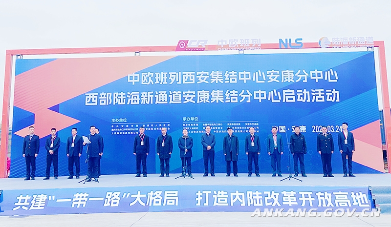3月24日,中欧班列西安集结中心安康分中心、西部陆海新通道安康集结分中心启动活动在安康东站铁路货场举行。市委书记武文罡宣布发车,并分别与西安国际港务区党工委委员、西安综合保税区专职副主任王运动,重庆市政府口岸和物流办公室二级巡视员陶亮共同为“中欧班列西安集结中心安康分中心”“西部陆海新通道安康集结分中心”揭牌。
