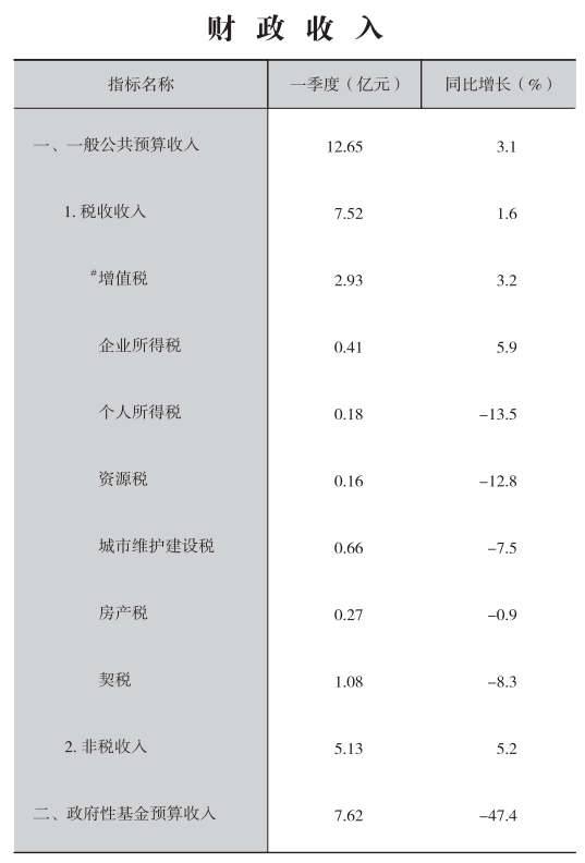 2023年一季度财政收入