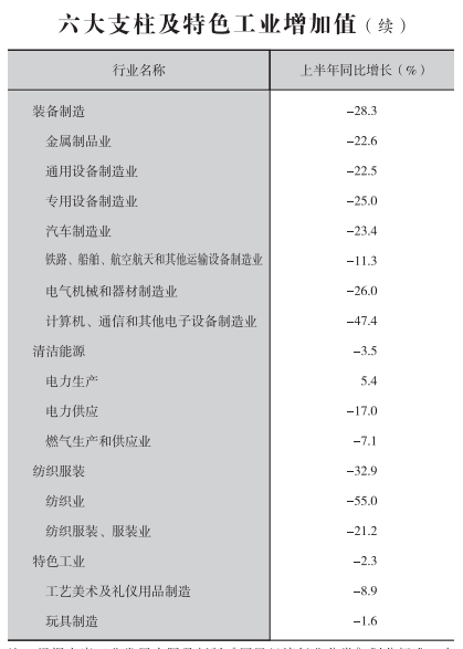 2023年上半年六大支柱及特色工业增加值