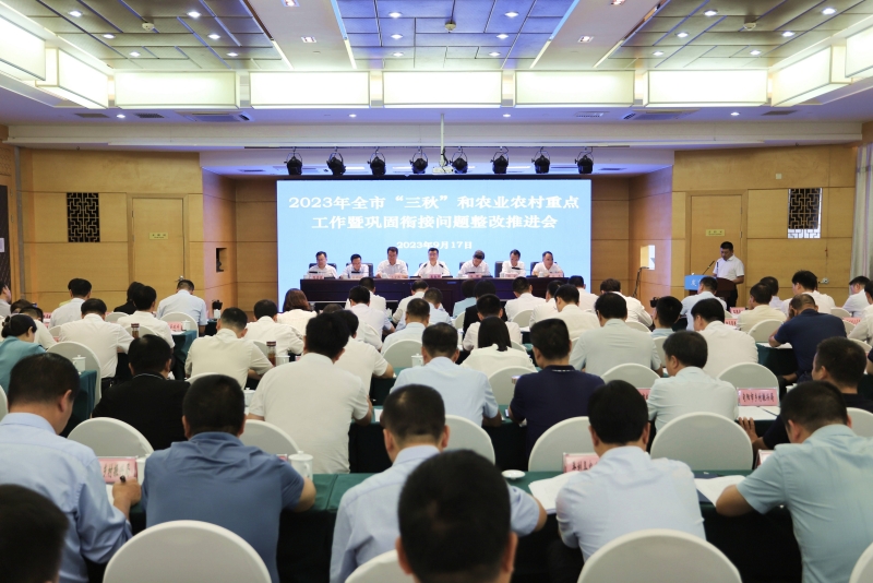 陈晖要求,全市各级各部门要提高政治站位,突出“三秋”生产抓好当前农业农村各项工作落实,不误农时抓好秋收秋播秋管,多措并举抓实耕地保护,高质量完成撂荒地治理和高标准农田建设,坚决守牢粮食安全底线。要把满足老百姓生产生活需要放在首位,因地制宜、因户施策,统筹结合、一体推进和美乡村建设和农村人居环境整治,盘活用好农村“三资”,壮大培强农村集体经济,夯实乡村全面振兴基础。要以巩固衔接问题整改为抓手,扛牢压实各级责任,深入推进问题整改,集中精力补短板、强弱项,着力提升“三保障”及安全饮水、大病医疗支出保障和群众收入整体水平,持续加强基层治理能力建设,全力推进巩固衔接和乡村振兴工作走在前、作表率,奋力实现省考“三连优”。