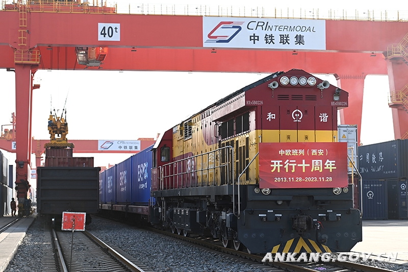 2023年11月28日,X8155次中欧班列在西安国际港站等待出发开往德国汉堡。新华社记者 邹竞一 摄