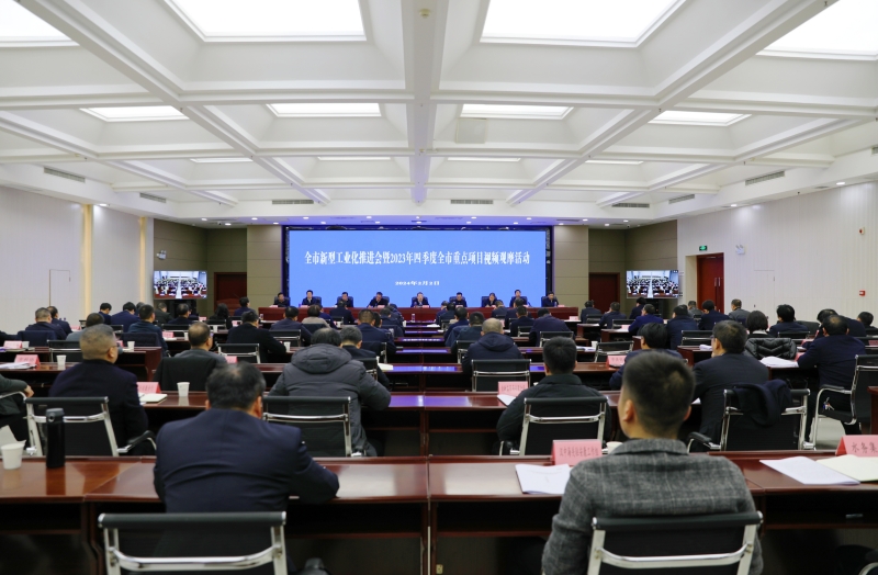 2月2日,全市新型工业化推进会暨2023年四季度全市重点项目视频观摩活动举行。市委书记武文罡出席会议并讲话。市人大常委会主任王彪,市政协主席周建功,市委副书记高晶华,市委常委、统战部部长寇全安,市委常委、副市长陈晖,市检察院检察长刘惠生出席会议。市长王浩主持会议。市委常委、常务副市长黄戈通报全市重点项目及观摩项目情况,副市长周康成通报全市新型工业化工作推进情况。