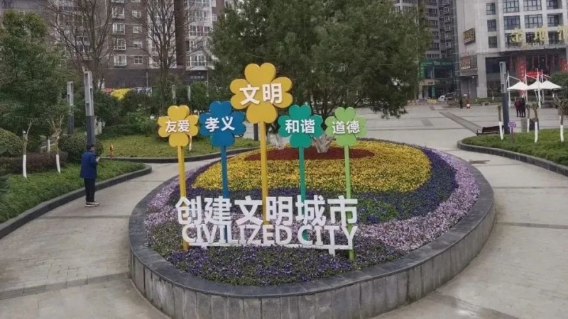 公园广场、街头绿地,摆满了花草,红、黄、蓝花卉相间,白的、紫的、粉的,簇拥在路边,以“百福”的字形迎接新年到来。