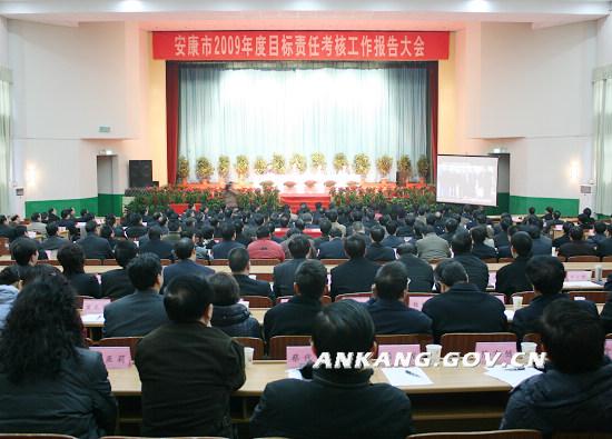 2月2日,安康市2009年度目标责任考核工作报告大会在安康职业技术学院东校区礼堂召开,接受省委、省政府第二考核组对我市2009年度目标任务完成情况的考核。省委、省政府考核组长、省司法厅长路志强,副组长、省委政研室副厅级研究员王焕朝出席会议,市委书记、市人大常委会主任刘建明向考核组作2009年度目标责任考核暨领导班子工作报告,市委副书记、市长方玮峰主持会议。
