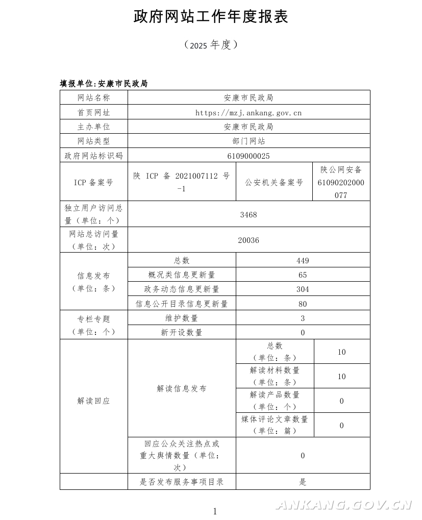 安康市民政局网站工作年度报表(2025年度)