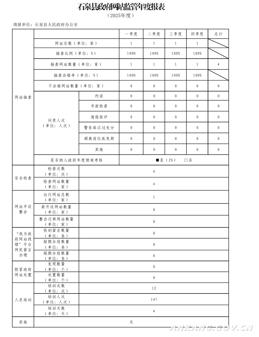 石泉县政府网站监管年度报表(2025年度)