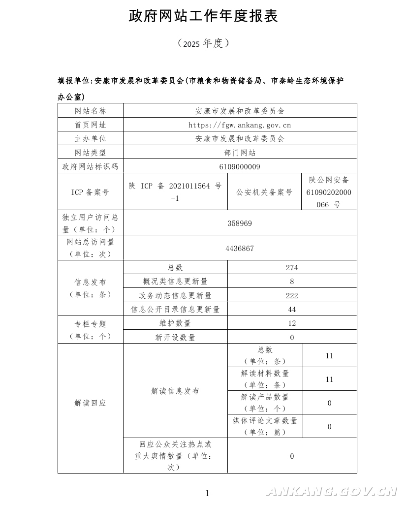 安康市发展和改革委员会网站工作年度报表(2025年度)