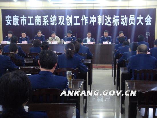 5月21日上午,安康市工商局召开全系统双创冲刺达标工作动员会,参加会议的有市局机关全体干部职工,汉滨分局领导班子成员和机关股室主要负责人以及安康城区周边9个工商所所长,同时还在各县分局设立了视频同步分会场。市委市政府副秘书长、市双创办主任唐志宏同志和市人大机关事务处处长、片区双创办副主任赵德安同志出席会议并讲话。