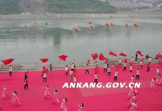 6月11日,参加第十届中国安康汉江“明江杯”龙舟文化节开幕式演出的演员们正在江南主会场进行紧张排练。当日,距第十届中国安康汉江“明江杯”龙舟文化节还有4天。随着龙舟节的日益临近,各参赛龙舟队和参加开幕式表演的演员们正加紧练习,确保第十届龙舟文化节的圆满成功。