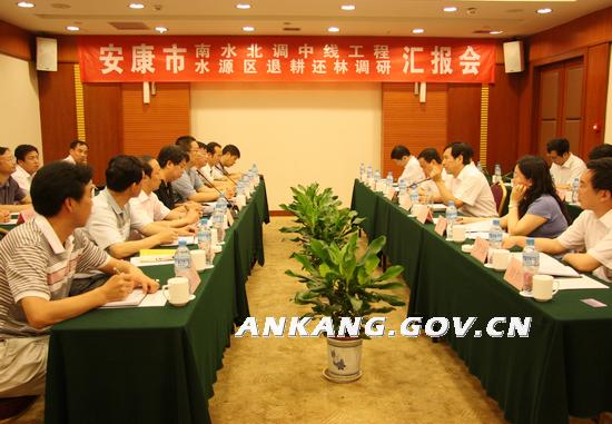 6月19日,国家南水北调中线工程水源区退耕还林调研组一行来我市就退耕还林工作进行调研。调研组一行实地考察了汉滨区退耕还林工作情况,随后进行了汇报座谈。副市长薛建兴、市长助理、市发改委主任李春临出席汇报会。汉滨区政府、市林业局、发改委、财政局、国土资源局、扶贫开发局等部门负责人参加汇报会。