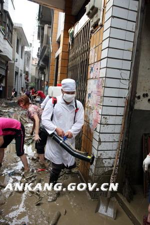 记者7月20日在白河县城河街看到,群众自发清除室内室外淤泥,毁损家具,有条不紊地开展清淤工作,白河县各单位部门的干部职工、公安民警、武警官兵、社区志愿者等也都有组织地加入到清淤行列中,积极参与清淤活动,有的奋力举起手中的铁铲或锄头挖掘深埋于沟中的淤泥,有的不断装运垃圾,有的挥舞扫把开展大清扫,卫生部门组织人员开展卫生防疫。尽管淤泥脏乱,但是干群们不怕脏、不嫌累,挽起裤管奋力挥锹,对沟渠、街道进行彻底清理。