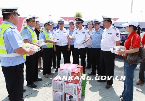 7月27日上午,市公安局长吕韶力在市局党委委员、交警支队长陈明鸣、交警支队政委李远程等领导的陪同下,检查调研视察灾后安康城区道路和高速公路交通安全管理情况,慰问全力确保道路交通安全畅通的交管民警。