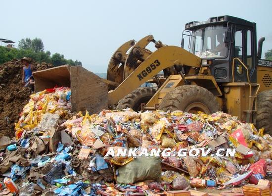 7月28日,随着副市长巨拴科一声令下,安康城区收缴的第一批水淹变质食品,全部被倒入垃圾填埋厂深坑进行掩埋处理。