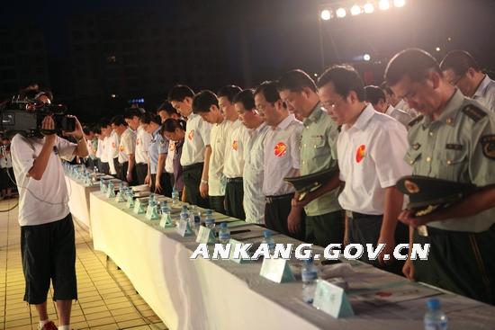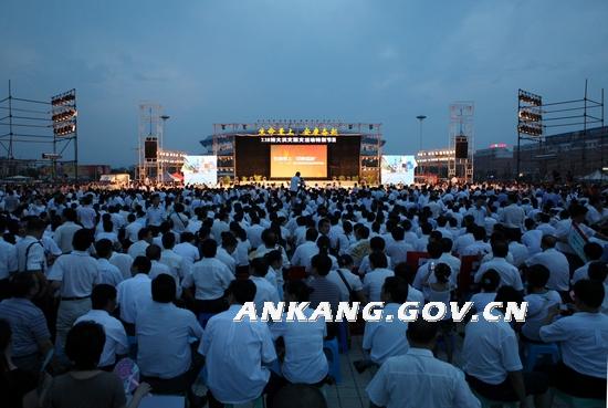 为表达我市300万人民对7•18特大洪灾遇难同胞的深切哀悼,进一步激发全市人民奋起救灾、重建家园的昂扬斗志,夺取抗洪救灾的全面胜利,7月31日晚,由中共安康市委、安康市人民政府主办,中共安康市委宣传部、安康市文化文物广电局、安康市民政局承办的“生命至上 安康奋起 — 7•18特大洪灾赈灾活动特别节目”在我市金州广场举行。