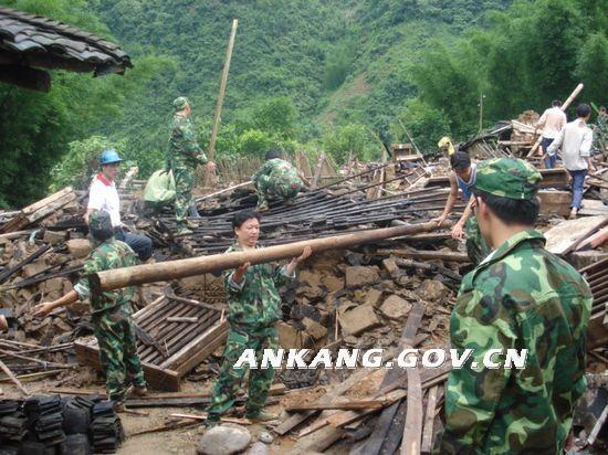 连日来,旬阳县城关镇武装部在灾后重建家园工作中积极组织引导民兵和抢险突击队进村入户帮助受灾群众建设家园,以实际行动为灾后重建工作添砖加瓦,纪念建军83周年。全镇120名民兵和抢险突击队成员深入灾区,搭建灾民临时居住帐房,修筑损坏道路,抢修电力和水利设施,喷洒防疫药水等,不分天晴下雨,白天黑夜,活跃在街头巷尾、村村寨寨最需要帮助的地方,成了恢复生产、灾后重建的主力军。