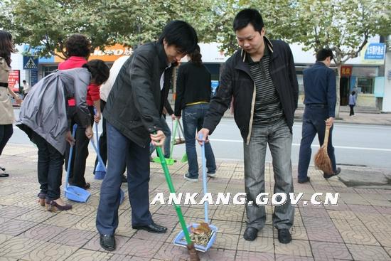干部职工自备扫把、簸箕、水盆、抹布等卫生工具,纷纷带头在规定的区域内进行了全面的卫生清扫、清洗和清除卫生死角等工作,大家扫的扫、擦的擦、捡的捡,个个都干的热火朝天,活动现场秩序井然。各位领导、干部职工们在发扬不怕苦、不怕累、不怕脏的精神状态下,用勤劳的双手为安康的市容环境带来了一股清新、靓丽的风景线,街道路面干净了、整齐了、城市的面貌也焕然一新了。