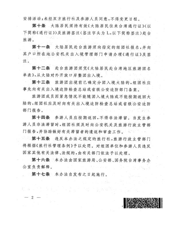 现公布《大陆居民赴台湾地区旅游管理办法》,自发布之日起施行。
