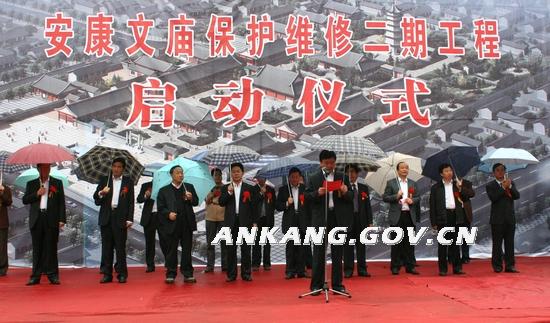 10月25日上午,安康启动文庙保护维修二期工程。市上领导邹明、钟顺虎、吴德珠、陈明等出席启动仪式,市政协主席邹明宣布工程开工令。