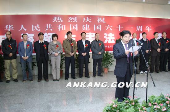10月27日上午,由陕西省文联、陕西省书法家协会、安康市委宣传部、市文联共同主办的“李成海师生书法作品展”在我市群艺馆正式开展。方玮峰、钟顺虎、马孝芳、陈明、李启良、郭政强等市上领导出席展览开幕仪式并为展览开幕剪彩。省文联副主席黄道俊,省书协主席雷珍民分别致辞,对展览开幕表示祝贺。