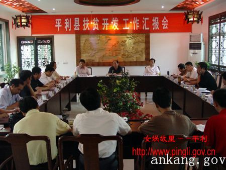 汇报会上,县委书记何邦军和县委副书记陈晓虎就平利县近年来扶贫开发工作进行了全面汇报。他们在汇报中说,平利是新一轮省级扶贫开发重点县,全县共有贫困人口8.08万人,低收入人口5.8万人,贫困人口占全县农村人口的40.4%,扶贫开发重点村120个,占全县行政村总数的40.3%。近年来,为认真贯彻省办“以扶贫重点村为主战场,以解决贫困人口温饱和提高贫困人口收入为目标,开发扶贫,整村推进”的扶贫工作新思路,县委、县政府结合县域发展实际,坚持把扶贫开发作为统筹农业农村发展、帮助贫困群体致富奔小康、构建和谐平利的重大战略部署,大力实施生态立县战略,努力建设陕西生态经济强县。在推进扶贫开发工作中,实行集中人力、集中项目、集中资金“三个集中”,突出主导产业、基础设施、村容村貌、生存环境“四大重点”,做到规划到位、服务到位、实施到位“三个到位”,走出了一条“政府统筹、资金捆绑、部门联动、群众参与,综合开发、整村推进”的扶贫开发路子,收到了良好的建设效果。全县启动重点村48个,其中19个已基本达到省市验收标准,完成了1675户6527人的移民搬迁任务,累计解决了1.6万贫困人口的脱贫致富问题,贫困人口人均纯收入的增长幅度连续三年高出全县农民平均水平。