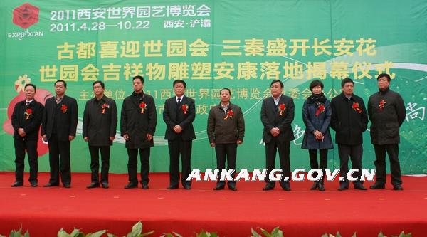 12月29日上午,由2011年西安世界园艺博览会执委会办公室和安康市政府联合主办的“古都喜迎世园会 三秦盛开长安花”西安世园会吉祥物雕塑揭幕仪式在我市白天鹅广场举行,西安世园会执委会办公室副主任、西安市政府副秘书长宓维新、市政府副市长张全明出席仪式,并为吉祥物雕塑揭幕。