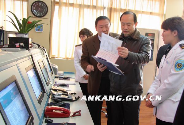 在市120急救调度指挥中心,陈明听取了指挥中心的工作汇报,在了解到2010年市120急救调度指挥中心共有效出诊(车)4692次,无一次指挥调度失误时,他说,120急救调度指挥中心是城市安全运行的重要保障之一,有了这个指挥中心的科学建设和发展,才能在常态下,在应急状态下,在节假日里保证老百姓的健康。春节期间的急救任务比较重,希望大家能够坚守岗位,共同担负起节日期间城市医疗急救的任务,确保在第一时间内接到信息,第一时间内出车,第一时间内赶到现场,第一时间进行救治,确保人民群众的生命安全和健康。