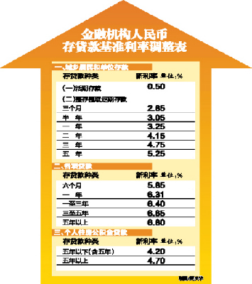 中国人民银行5日晚间宣布,自2011年4月6日起上调金融机构人民币存贷款基准利率。其中,金融机构一年期存贷款基准利率分别上调0.25个百分点,其他各档次存贷款基准利率及个人住房公积金贷款利率相应调整。