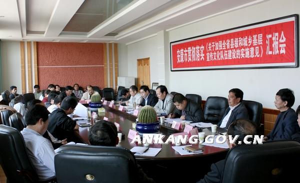鲍贻勇在听取我市工作汇报后,对我市贯彻落实《关于加强全市县级和城乡基层宣传文化队伍建设的实施意见》情况给予充分肯定。他要求,要深刻认识加强基层宣传文化队伍建设工作的重要性,结合省六部委出台的《实施意见》有关要求,重点做好人员配置、经费投入、培训激励等方面工作,加快推进基层宣传思想文化队伍建设步伐,进一步壮大基层宣传思想文化工作实力。市委宣传部要充分发挥牵头作用,在5月中旬前会同其它五部门组成联合检查组,深入全市各县区对省市两级《实施意见》贯彻落实情况进行专项督促检查。各县区委宣传部要把《实施意见》的贯彻落实,作为解决基层宣传文化战线,迎接新挑战、完成新任务、实现新发展的治本之策,认真抓好落实,切实提高基层宣传文化队伍的整体水平。