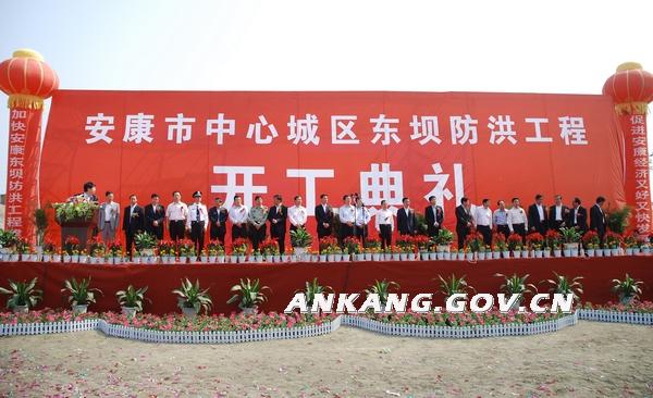 东坝防洪工程是今年省委、省政府确定的全省六大水利重点项目之一,是安康水利发展史上最大的民生水利项目。工程位于安康城区,北临汉江,西起东堤,东至黄洋河左岸,南沿安平公路至窑沟口。工程总投资5.8亿元,采用20年一遇洪水标准,新建堤防3680米,堤顶高程253米,同时布置交通闸4座、内外环路各1条、泵站1座,总工期5年。此次先期启动的是东坝防洪工程试验段建设,试验段堤防全长400米,堤顶高程为253米,概算投资3283万元,工期1年。