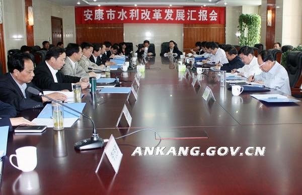 省水利厅厅长王锋在参加4月25日下午的安康中心城区东坝防洪工程开工仪式后,4月26日上午,到市水利局就我市水利改革发展工作进行调研。市长方玮峰、市委常委薛建兴出席汇报会。