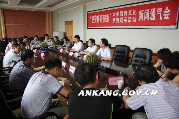 8月30日上午,市委宣传部召开“把安康带回家”大型宣传文化系列展示活动新闻通气会,向本市各新闻单位和驻安新闻媒体通报“把安康带回家”大型宣传文化系列展示活动的有关情况。