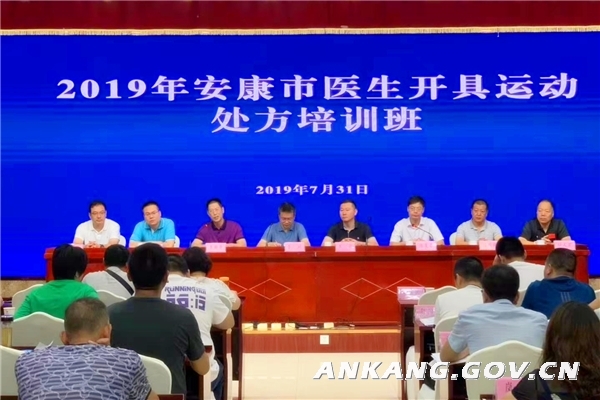 7月31日至8月2日,2019年安康市医生开具运动处方培训班在安康宾馆举行。省体育局群众体育处副调研员王丹,省卫健委健康促进处正处级调研员李斌,市教体局副局长陈复勇,市卫健委副主任朱新年出席开班仪式。