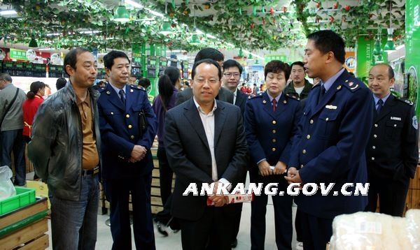 9月29日上午,副市长张全明带领市食品安全委员会及有关部门负责人深入城区宝业蔬菜批发市场、喜盈门超市、安康花旗食品有限公司、南门集贸市场、金苑大酒店等重点区域,检查十一国庆节期间食品安全工作。