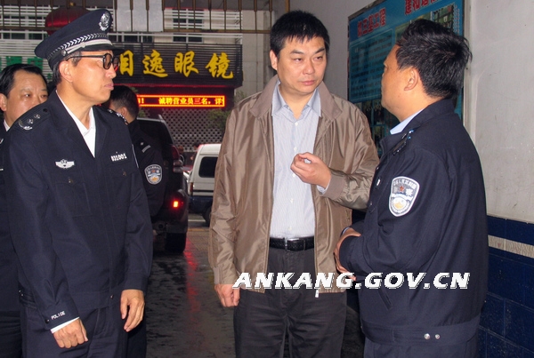 陈勇一行先后来到汉滨区新城派出所、西城派出所、兴安中路十字接处警平台等地,看望一线民警,走访了解重点案件侦破、多发性案件专项整治等严打整治工作进展情况,听取了市公安局汉滨分局关于国庆期间社会治安稳定工作情况的汇报。陈勇充分肯定了前一阶段严打整治工作取得的显著成绩,对汉滨公安分局实施警力下沉、定岗定责、严抓严管的做法给予了高度评价。