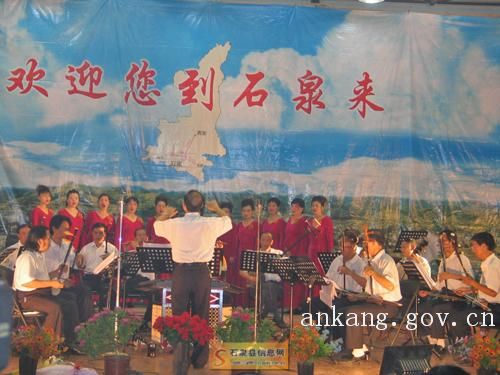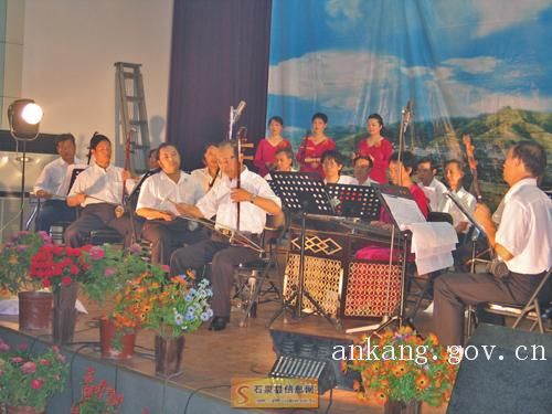 石泉县民族乐团是一支以城区中老年民族器乐爱好者自发组织起来的自娱自乐型的非营利性社团组织,目的是组织城区器乐爱好者,发挥特长、陶冶情操、培养人才,提高器乐演奏水平,活跃城乡群众业余文化生活,繁荣和发展我县民族音乐艺术事业。目前有正式团员45人,包括弦乐组、弹拔组、管乐组、打击组。购置了民族乐器,谱架,乐凳等。坚持每周星期一、五晚上组织队员开展排练活动,先后排练了《金蛇狂舞》、《喜洋洋》、《山城巨变》等10多首大型器乐曲。