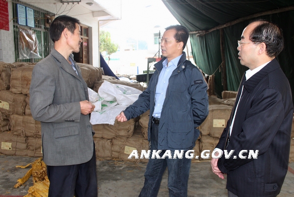 10月12日,副市长巨拴科带领市烟草局负责同志来到汉滨区茨沟镇烟叶收购站调研烟叶收购工作。