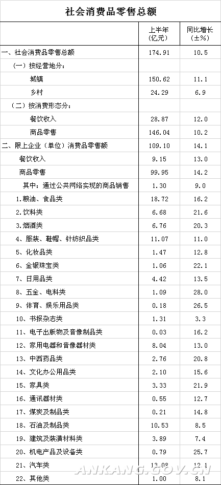 2019年上半年社会消费品零售总额