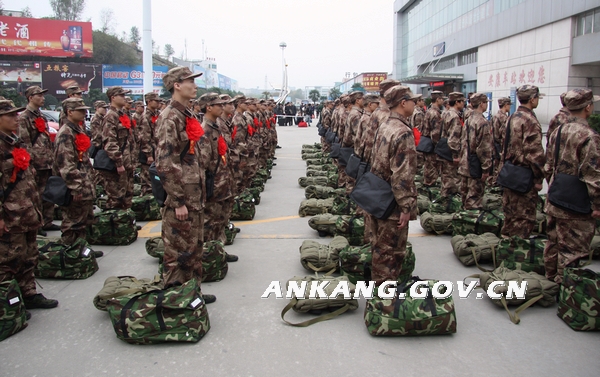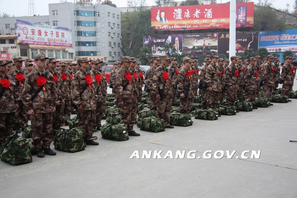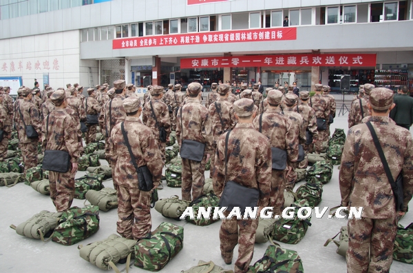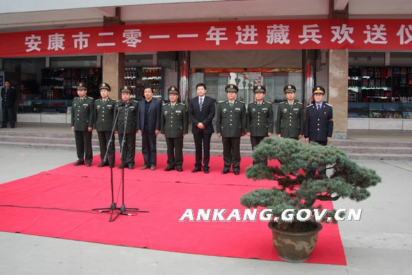11月20日,我市2011年进藏兵欢送仪式在安康市火车站举行,75名光荣参军的小伙子们胸戴红花,满载着自己的理想和亲人的嘱托,登上火车告别家乡,开始他们的边疆军旅生活。市委常委、常务副市长、市征兵领导小组组长徐启方,军分区司令员、市征兵领导小组副组长高兴平出席欢送仪式。