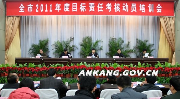 鲍永能在动员报告中指出,刚刚结束的市第三次党代会,制定了建设美好安康的宏伟蓝图,新的形势和任务,对考核工作提出了新的更高要求。实现建设美好安康的目标,必须进一步完善目标责任考核体系,必须以高度的责任感和使命感将考核制度毫不动摇地坚持下去、与时俱进地健全完善。要认真领会市委对于今年考核工作的新精神、新要求,准确把握考核工作的指导原则和操作程序,把握考核政策要求,从严从实做好2011年度集中考核工作。于此同时,紧扣要紧紧围绕建设美好安康大局,突出今年全市发展重点,科学谋划,精心制定好2012年考核指标。