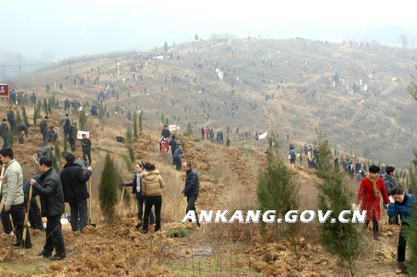 今年3月12日是我国第33个全民义务植树节,3月6日,市委、市政府召开千人参加的2012年植树造林动员大会,并在高新区财富广场、安康学院新校区、鲤鱼山北坡同时举行了共5000人参加的义务植树活动,会议规模和植树场景的壮观程度是近几十年来我市造林绿化史上所没有的。全市大规模植树造林活动以此拉开了序幕。