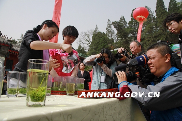 龙泉•汉水泡绿茶是本届茶文化节最大的亮点,从我市运抵首都北京的汉江水与八大处龙泉同泡富硒绿茶,供游客品尝。在汇水仪式上,励小捷、刘金平、黄杰、李钟铮、荣华、方玮峰将从我市运来的汉江清水与八大处公园的龙泉御水共同注入象征着安康、石景山两地友谊的连心池中。随着晶莹剔透的玉珠飞溅,现场彩球飞舞,天籁之音从天而降,舞台上巨型茶壶随之流出涓涓清水。汉江、龙泉的交融汇合,也预示着两地友谊的源远流长,绵延不息。随后,荣华、方玮峰共同宣布:第十一届八大处中国园林茶文化节•陕西安康富硒茶文化周开幕。