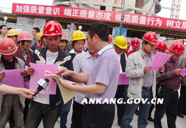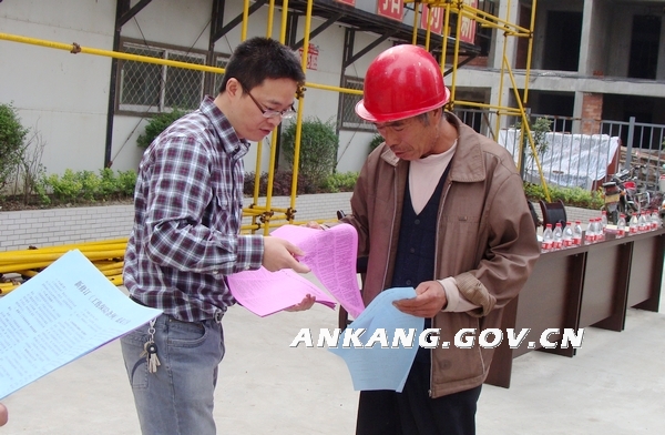 为了将此次宣传活动推向高潮, 5月15日,市人社局周育论副局长亲自挂帅,抽调市人社局、市社保中心、汉滨区人社局及社保中心等20余人分成两个宣传小组,带着宣传资料分赴到兴华名城、兴科明珠、安建集团、世纪建司等建筑工地进行宣传,到工地现场后,企业负责人召集1000名工人,周育论副局长进行了集中宣讲,工人对工伤保险条例十分关注,纷纷领取宣传资料,咨询有关问题。宣传人员积极耐心的向工人们对涉及工伤保险参保、工伤申报、工伤认定、劳动能力鉴定、工伤待遇、职业病等农民工比较关心的热点问题进行一一解答。工地负责人说: “工伤保险保障了劳动者在劳动生产工作中遭受事故伤害后获得医疗救治、经济补偿和身体康复的权利,同时,也分散了企业的工伤风险,保障了企业健康地发展,企业给员工买了工伤保险,就是买了健康、买了平安”。工人们纷纷高兴地说:这下为我们解除了后顾之忧,我们就能放心的干活,多挣一些钱,也为安康城市建设多做一些贡献。
