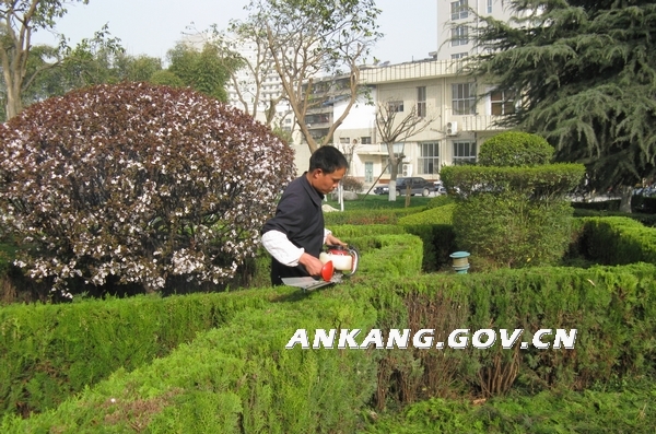 1、聘请专业技术人指导修剪机关大树、绿篱,科学的给其施肥、防病虫害,使机关的树木生长茂盛。
