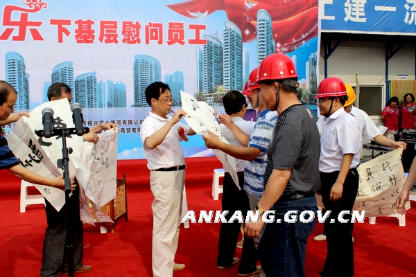 为把市委、市政府的亲切关怀和广大文艺工作者的深情厚谊送到基层,让安居工程的建设者们度过一个欢乐的端午佳节,参加慰问活动的艺术家们精心赶排节目,以饱满的热情,为建设员工奉献了一台内容丰富、形式多样、雅俗共赏的文艺节目,博得观众阵阵掌声。活动现场,市书协和市慈善书画院的艺术家们还向建设者们赠送了一批书画作品,部分企业代表也为建设者们送去了防暑的药品和饮品。