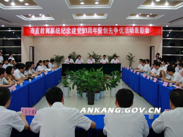 6月29日下午,安康市教育局隆重召开市直教育系统庆祝中国共产党建党91周年暨创先争优活动表彰会。市教育局党委书记、局长马恒昌出席会议并讲话,局党委委员、市直各单位党组织和局机关各支部负责人、创先争优先进基层组织负责人、优秀共产党员、党员代表共90余人参加会议。