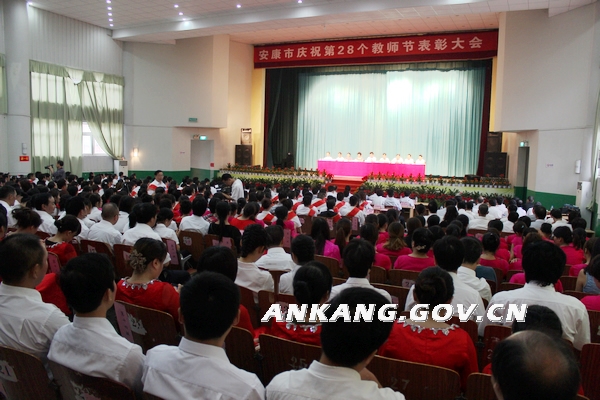 9月10日上午,我市隆重召开庆祝第28个教师节暨“师德标兵”“优秀教师”表彰大会。大会号召全市教育战线和广大教师,要以对党和人民高度负责的精神,切实践行“学为人师、行为世范”的标准,不断以自己的辛勤劳动,努力为安康、为国家培养一代一代杰出人才。