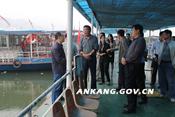 王安利一行先后来到瀛湖码头、高客站、十天高速安康东收费站、包茂高速包家山、大棕坡隧道等交通安全关键部位,详细了解旅游、交通等部门迎接“双节”的准备情况,并就如何快速应变处置突发事件,确保游人度过一个舒适愉快的假期,听取了有关部门的工作汇报。