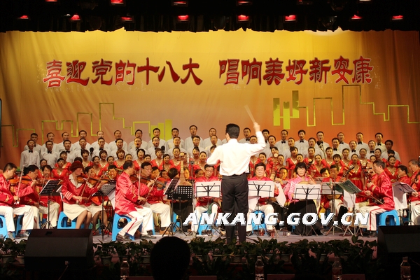 在喜迎党的十八大的喜庆氛围中,9月26日下午,由市直机关工委、市双创办、市文广局、市振兴办共同主办的“喜迎党的十八大 唱响美好新安康”市直机关干部学唱汉调二黄歌咏比赛在市群艺馆隆重举行。市上领导鲍永能、马涛、张全明、杜寿平、龚光喜、徐铁军、黄秀玲出席歌咏比赛并为获奖单位颁奖。